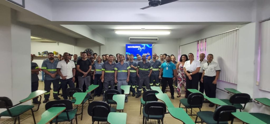 Na Viação Grande Vitória, duas ações marcaram o Novembro Azul. A primeira foi uma palestra para a equipe de manutenção diurna, conduzida por Paloma Xavier, que bateu um papo aberto com os colaboradores sobre saúde do homem, prevenção e autocuidado, trazendo várias orientações práticas para o dia a dia.